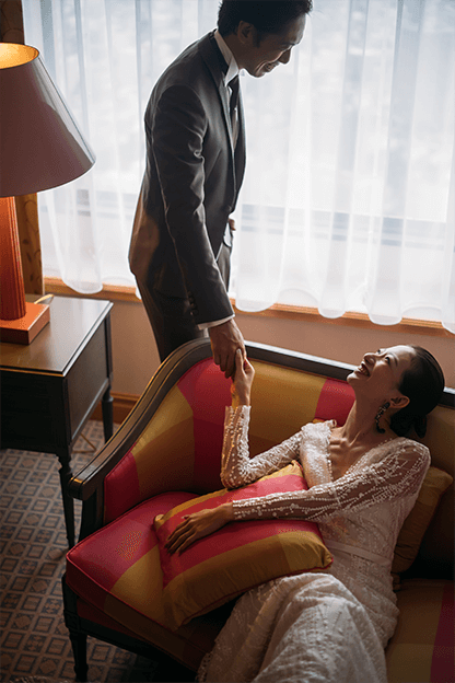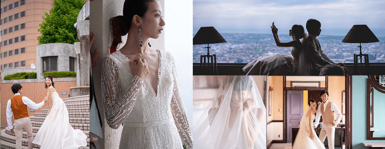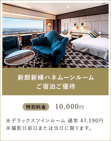 客室からの風景をバックに、非日常感溢れるラグジュアリーな撮影を。