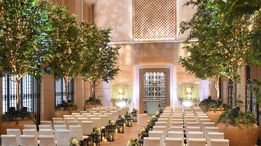 30階のフロアに広がる高さ50mの吹き抜け空間に"音と光"に包まれるアトリウムガーデンチャペル。