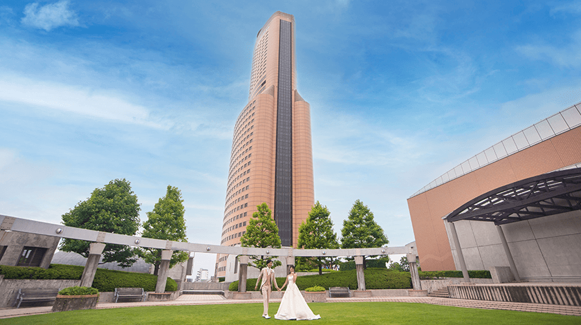 浜松のランドマーク「アクトタワー」をロケーションに壮大な青空とのフォトウエディング。